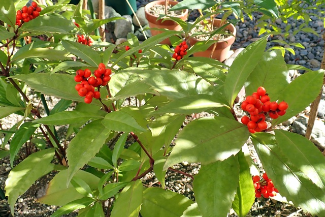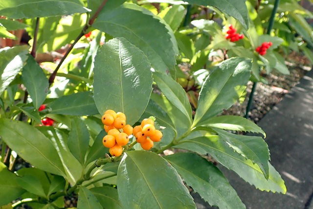 千両も赤と黄色の実が付いています。
