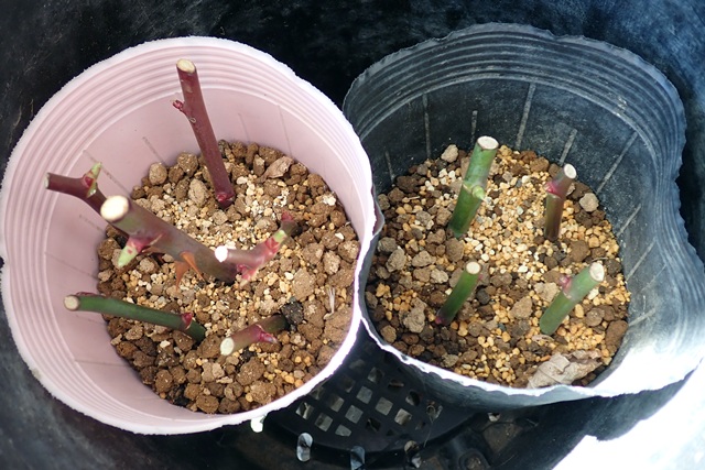 黄色のバラ、「あゆみ」と「かぐや姫」のさし芽をしました。