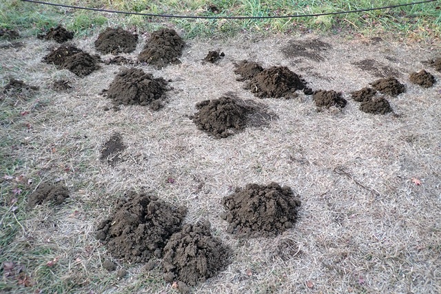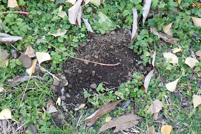 あちこちに土が盛り上がっています。